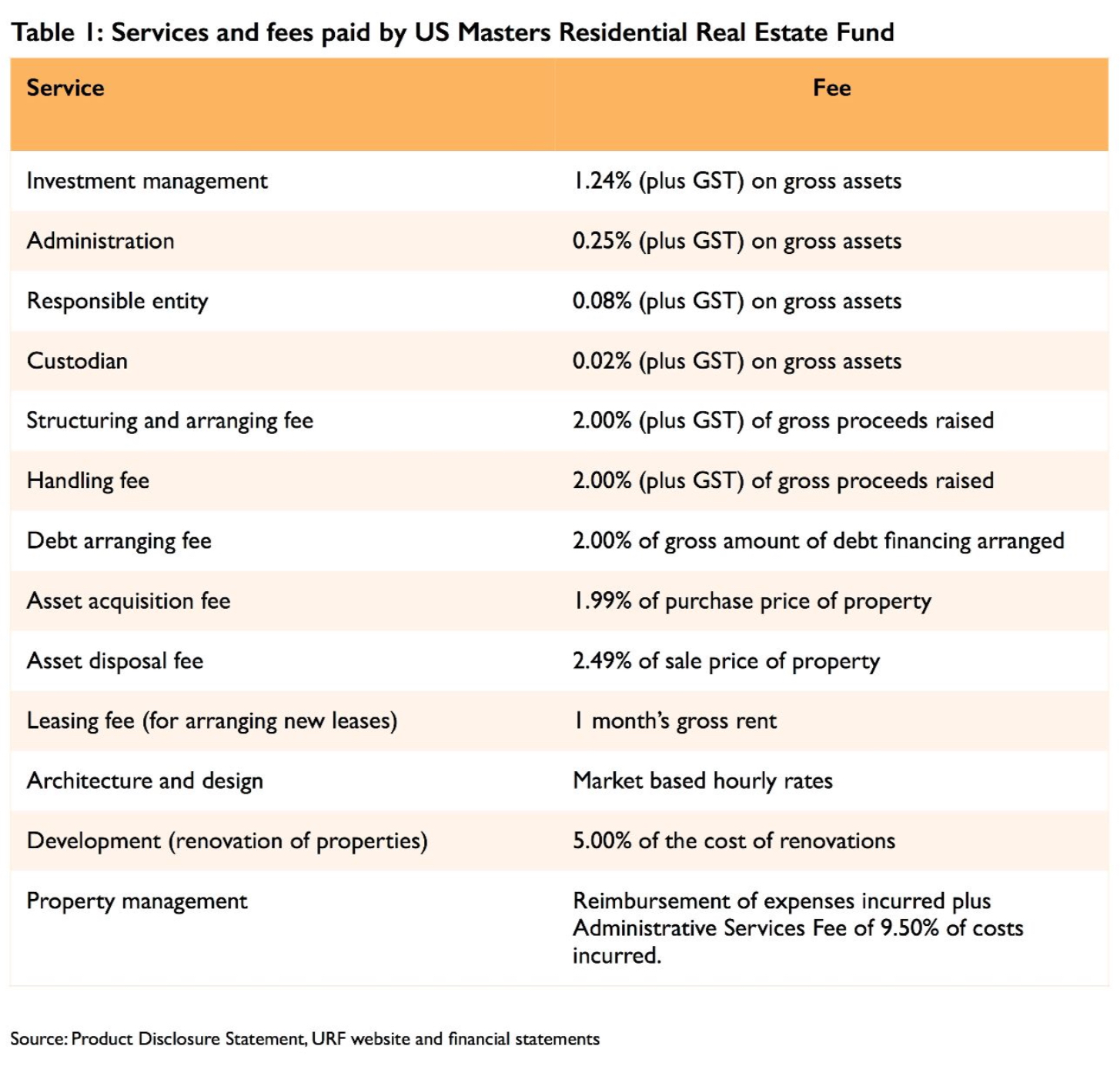 The US Masters Residential Property Fund (ASX Code: URF) is the magic pudding of investment vehicles – a continuous buffet of fees for the manager and promoter, Dixon Advisory Group (now Evans Dixon) and its associates. When we first read the fund’s financial statements we were amazed at the number of different fees Dixon and its associates (which we’ll refer to simply as ‘Dixon’) were able to charge to the fund. However, buried deep in the balance sheet or related party notes, we’d find yet another fee.