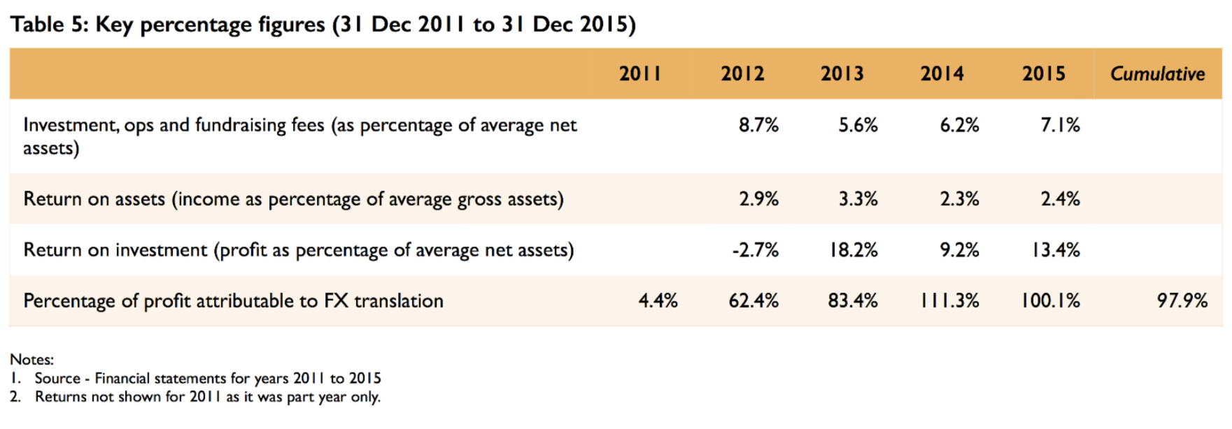 Worryingly, through to 31 December 2015, FX gains on translation contributed almost 100 per cent of the cumulative post-tax accounting profits of the fund.